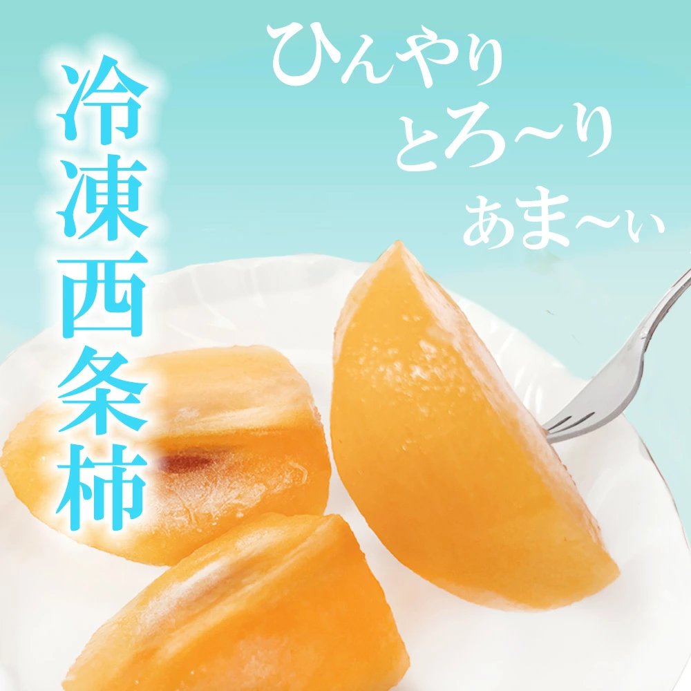 渋抜きされた西条柿は、数日くらいしか日持ちしませんが、冷凍加工することにより、旬の美味しさをいつでも味わえます。